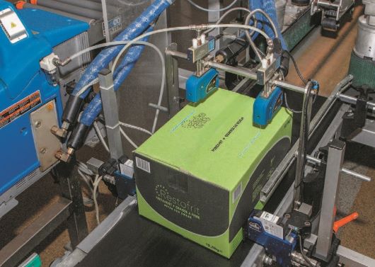 食品、飲料などの小箱や段ボール函のフラップに、ホットメルト接着剤を自動塗布して、製函・封函が可能です。 また段ボール、重袋、平版包装などの外装にホットメルト接着剤を塗布することで、積み上げた際の荷崩れを防止します。 フィルム巻き付けに比べて、プラスチックの消費量やプラスチックごみ、作業工数の削減が可能です。