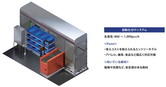 拡張性に優れたWMS(倉庫管理システム)ソフトウェア「 AINECT ®」や、階層式間口構造の自動仕分け機である「ASTROSORT」を紹介いたします。