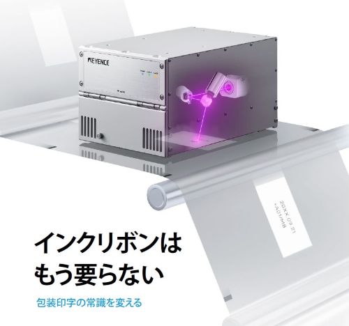 包装フィルム用UVレーザプリンタは、光で賞味期限・ロット番号などを印字するプリンタで、従来サーマルプリンタで必要だったインクリボンは不要です。さらに、あらゆる包装機に取りつく超コンパクトヘッドサイズを実現。お使いのフィルムそのままで導入いただけます。