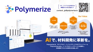 Polymerizeは化学・素材業界向けにAIを活用した研究開発を支援するソリューションプロバイダーです。ブースでは、実験計画、配合設計、物性予測を支援するMIプラットフォーム「Polymerize Labs™」の実演や試作・評価・導入支援を一体化したオールインワン型「Polymerize One™」をご紹介します。研究開発DX・素材開発におけるAI活用にご関心のある方はぜひお立ち寄りください。